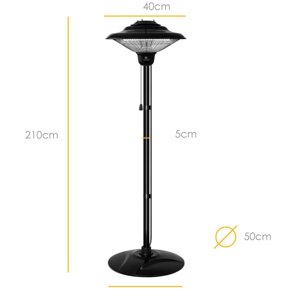 З радіаційним обігрівачем KESSEN з підставкою ви вибираєте потужний прожектор потужністю 1500 Вт, який нагрівається без запаху, диму та об’єму завдяки кварцовому нагрівальному елементу. З міцним алюмінієвим плафоном ви можете використовувати променистий обігрівач в гаражі, на терасі або в саду. Крім того, прожектор захищений від бризок.