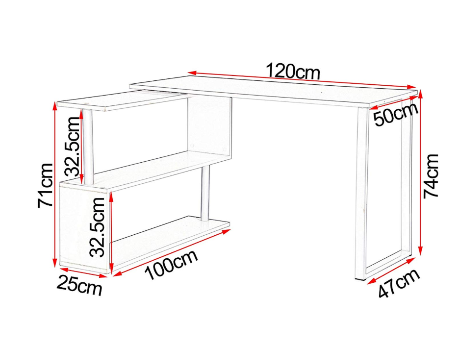 – Стіл з 4 полицями пропонує місце для книг, журналів, канцелярських продуктів і т.д.
