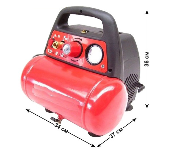 Міні-компресор Tiptopmaker – ідеальний помічник по будинку, саду, гаражу, майстерні і не тільки. Підходить практично для всіх робіт із застосуванням стисненого повітря, особливо для оздоблювальних робіт, розпилення, накачування куль і коліс, для робіт з інструментом, що працює від стисненого повітря. Даний компресор працює повністю без олії, завдяки чому він біліший економічний і не вимагає техобслуговування з контролю та доливання олії. Потужний електродвигун на 1100 Вт досягає частоти обертання 3400 оборотів за хвилину і дозволяє швидко підвищити тиск повітря до 8 бар. Корпус має велику ручку для зручного переміщення та мобільності пристрою.