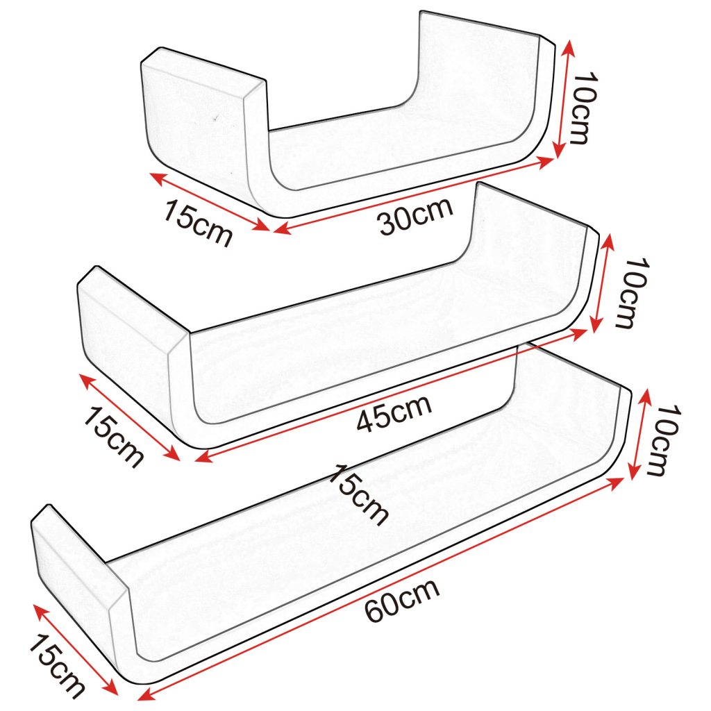 • Розмір (Д х Ш х В): 60 х 15 х 10 см; 45 х 15 х 10 см; 30 х 15 х 10 см