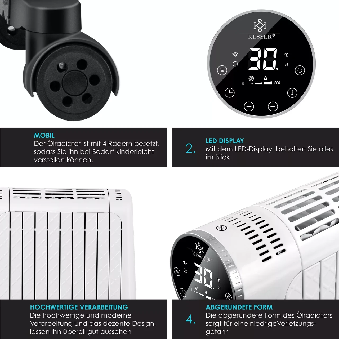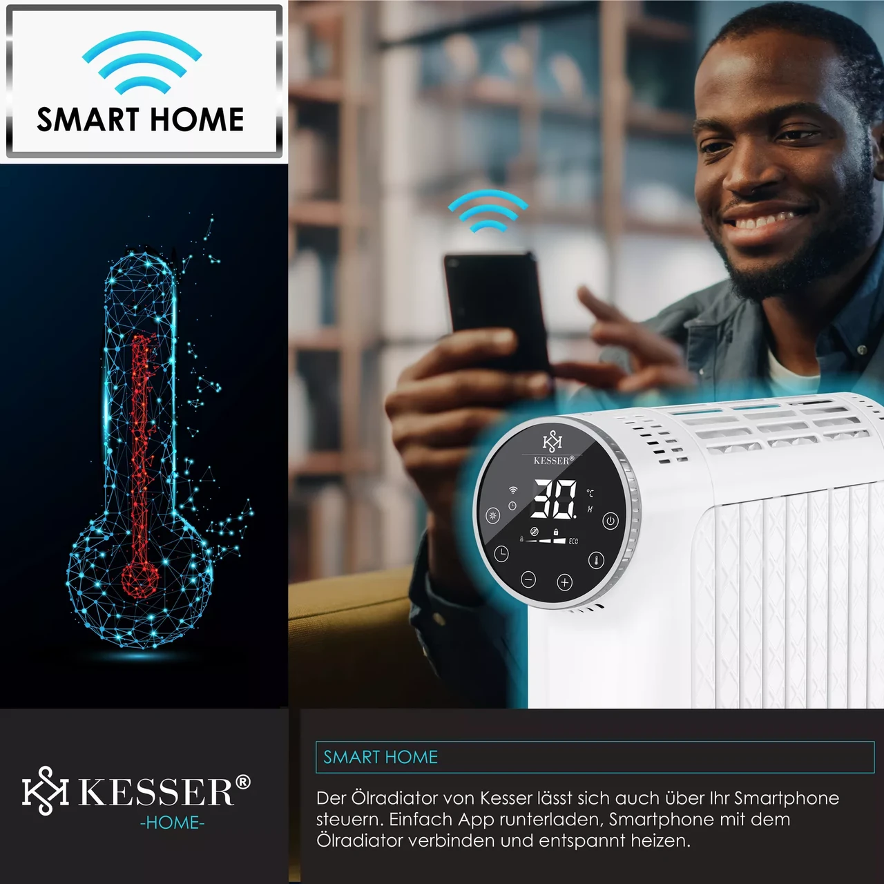 🔥 Масляний обігрівач KESSER 2500 Вт з WiFi, LED-дисплеєм, термостатом та таймером