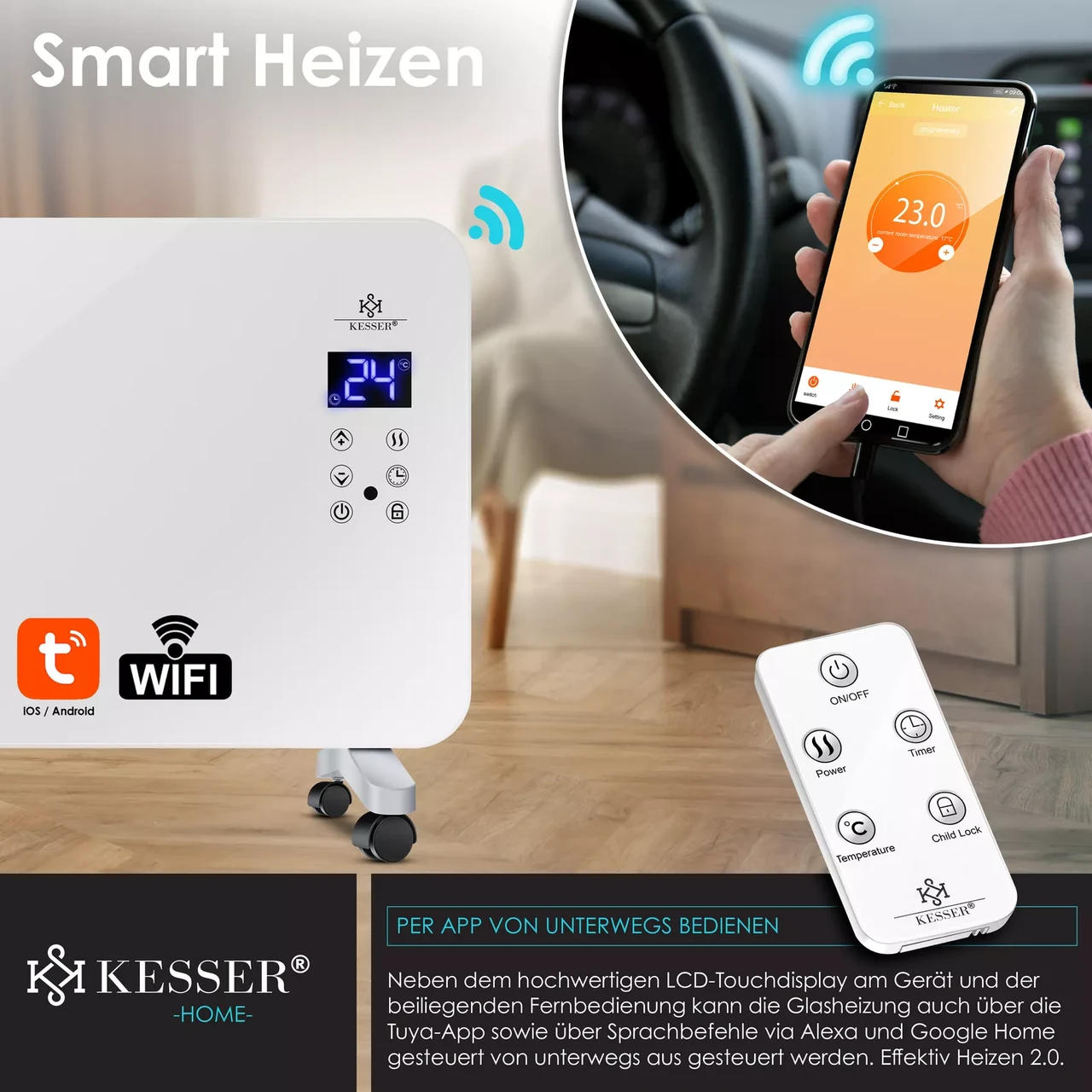 Наш скляний обігрівач KESSER – це сучасне та енергоефективне рішення для швидкого та комфортного обігріву вашого приміщення. Поєднуючи стильний дизайн та потужну функціональність, цей обігрівач стане чудовим доповненням вашого будинку чи офісу.