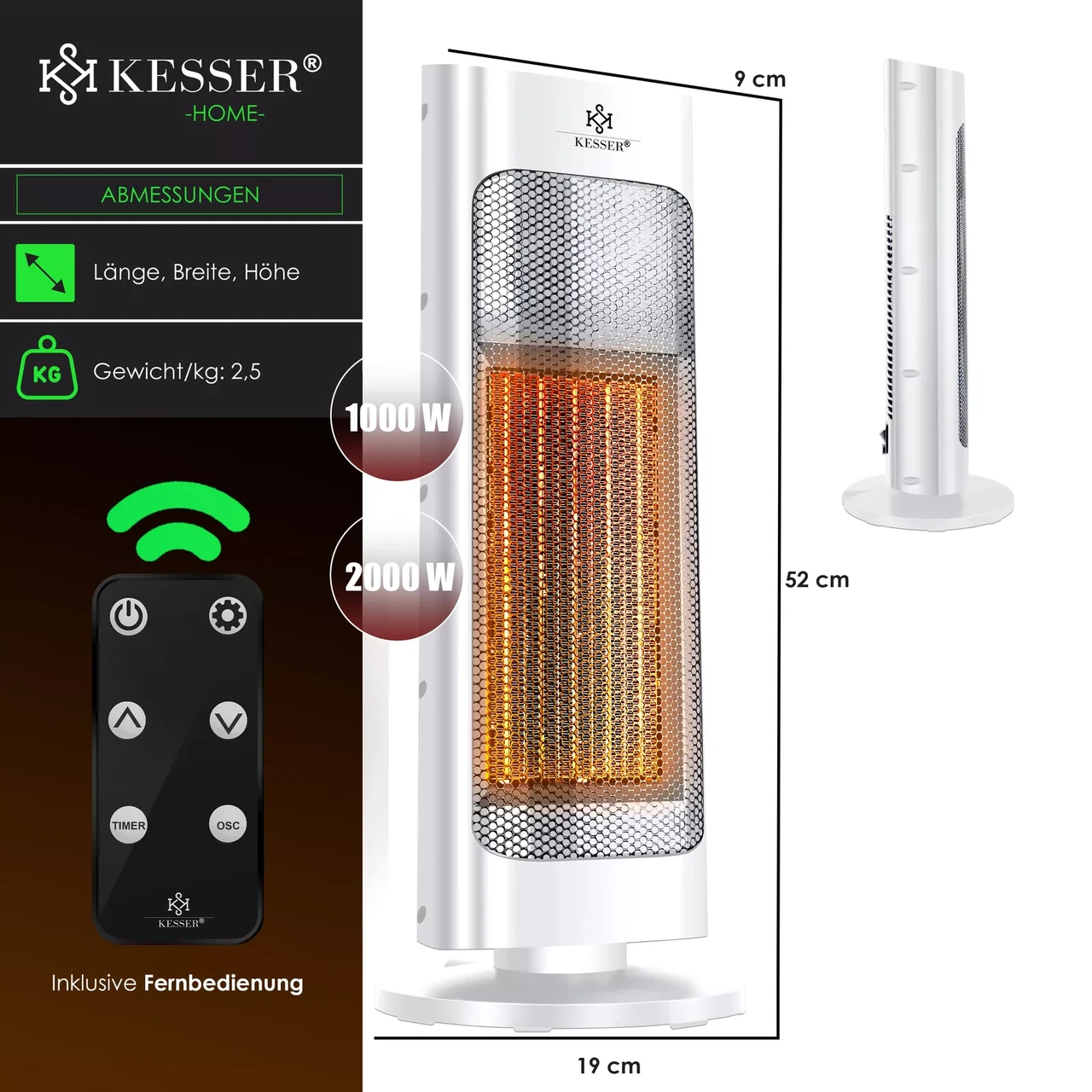 Інфрачервоний обігрівач KESSER Керамічний обігрівач 2000 Вт Обігрівач для дому 52x9x19 см