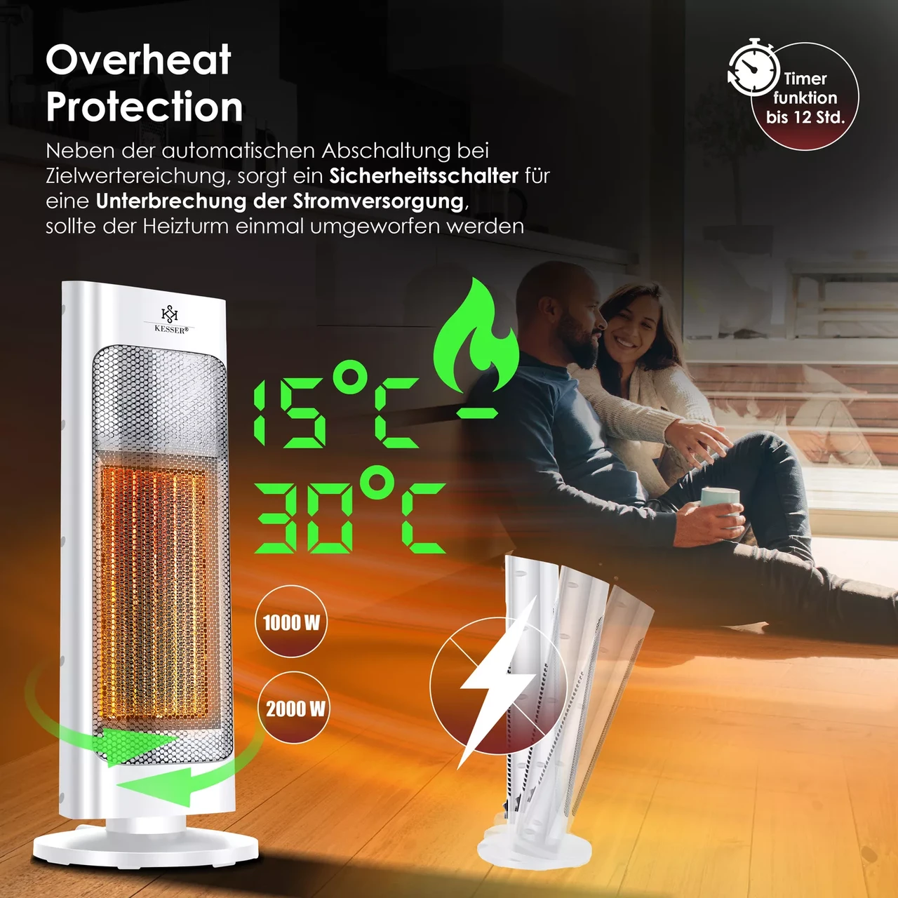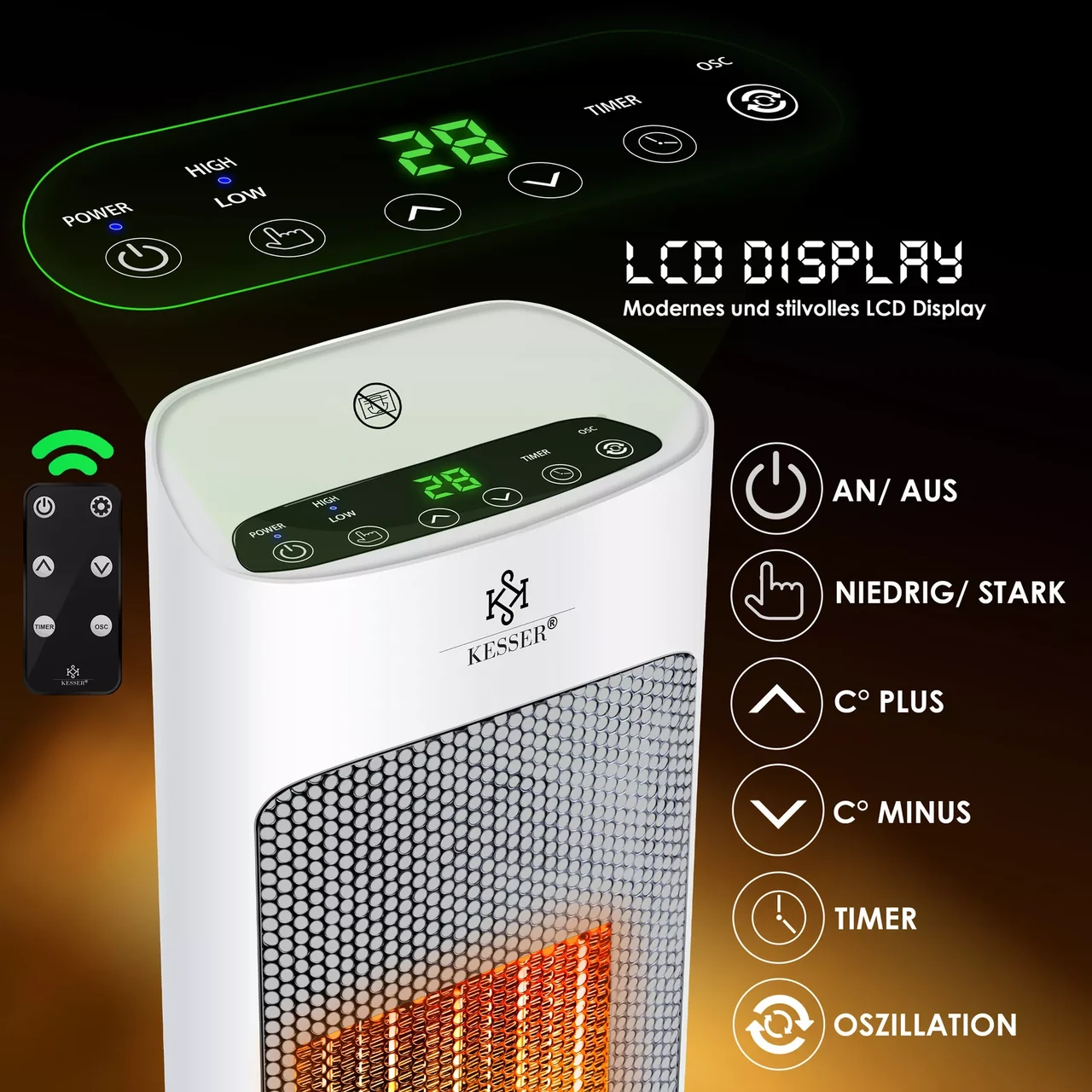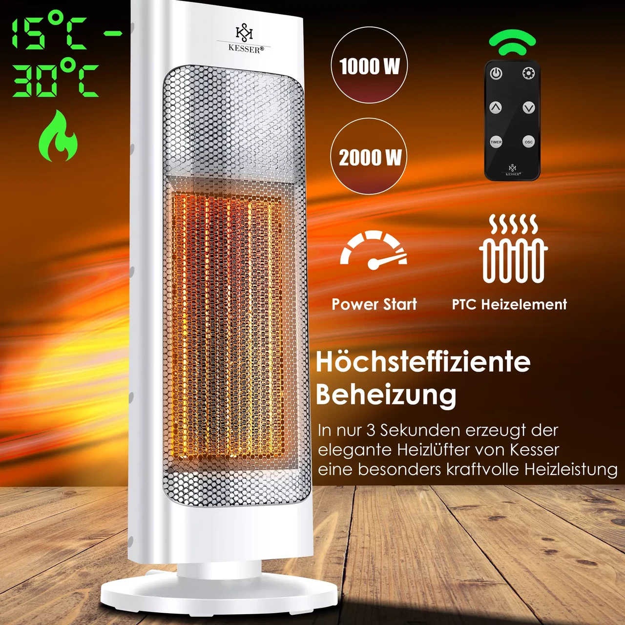 “Побутові тепловентилятори KESSER Тепловентилятор 2000 Вт Керамічний обігрівач (обігрівач для дому)”
