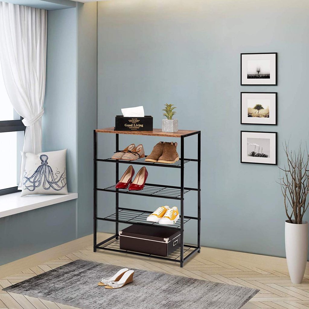 • Підставка для взуття з дерева та сталі забезпечує стійкість та продовжує термін служби.