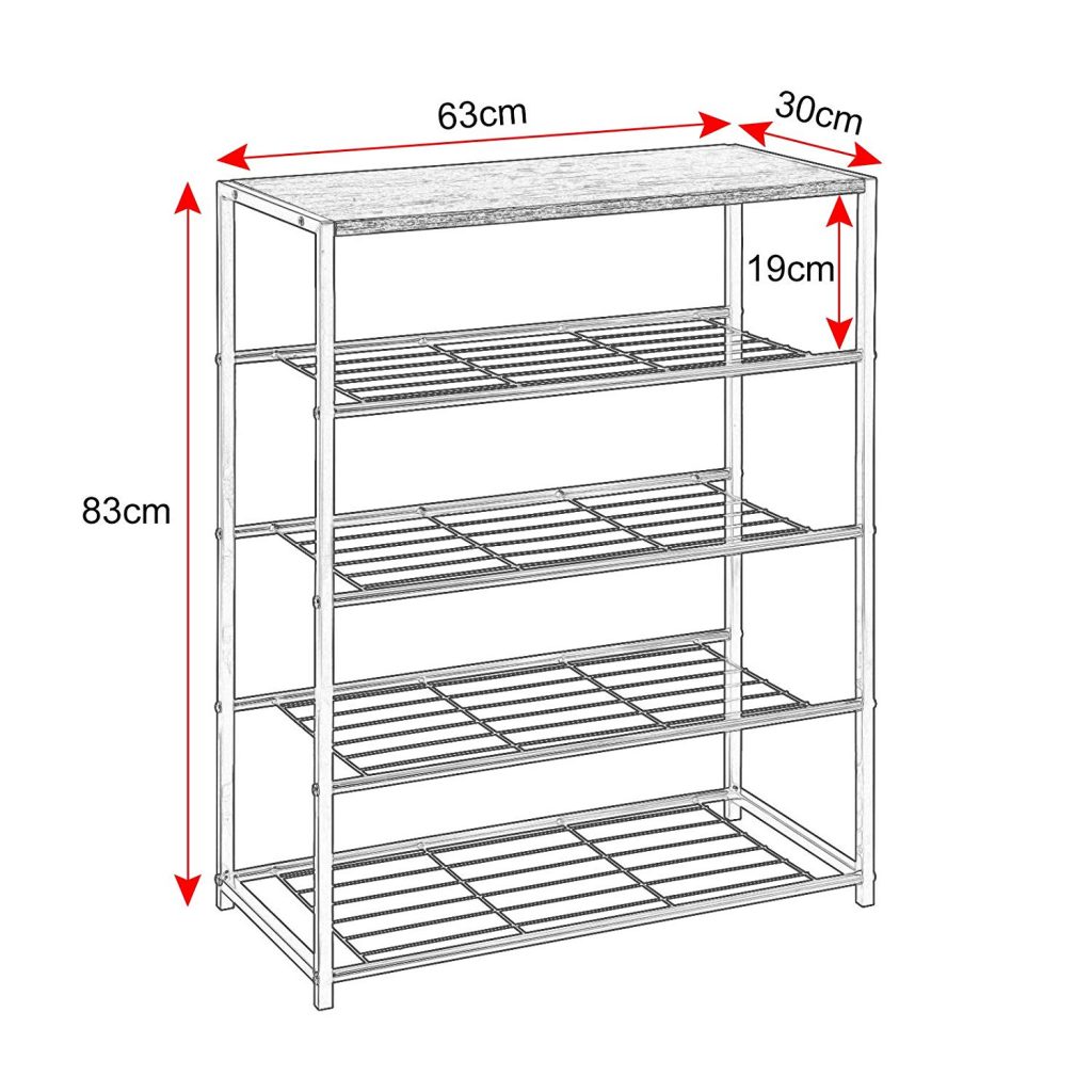 • Висота кожного рівня: 19 см, приблизно до 3 пар жіночого взуття на полицю