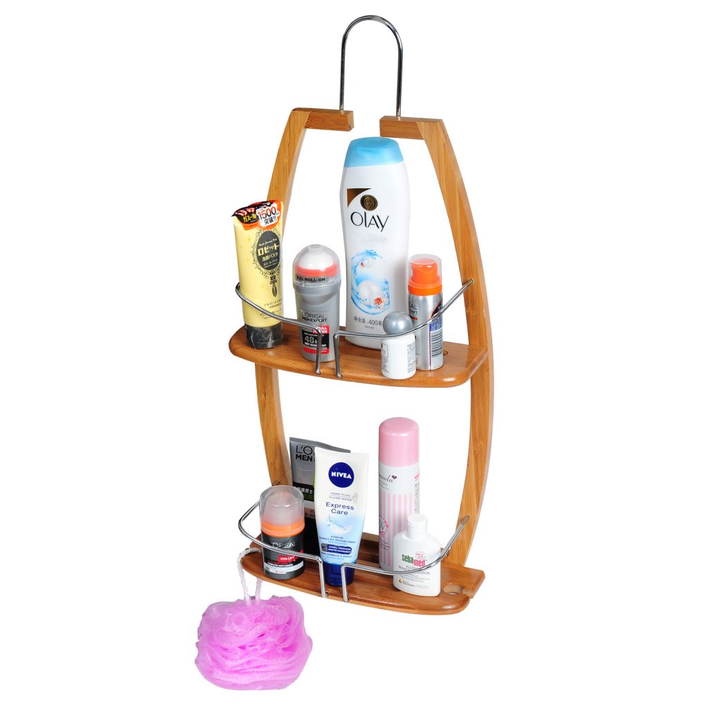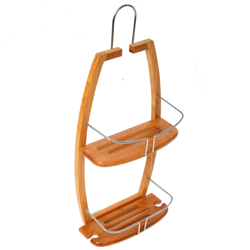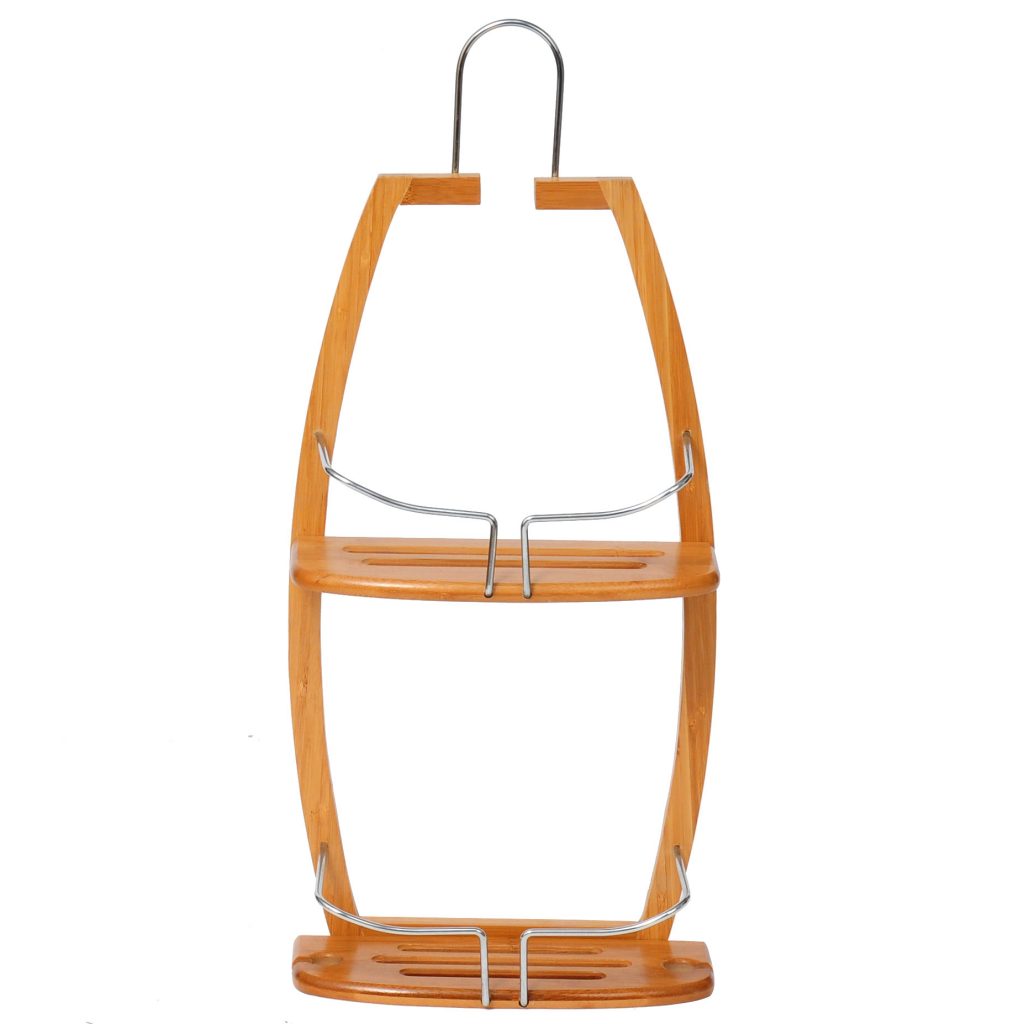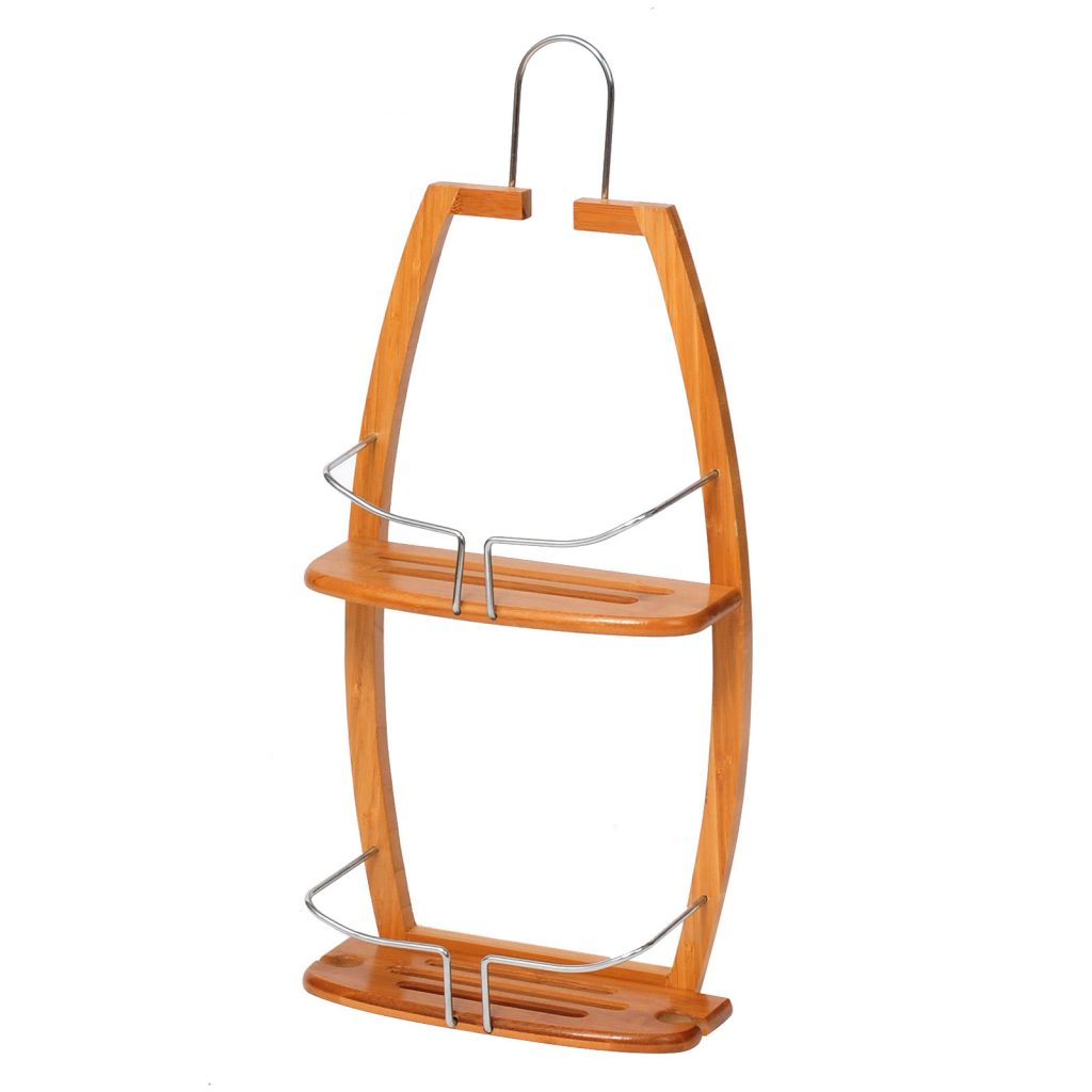 Високоякісна полиця для ванної кімнати з бамбука та хромованого можна використовувати у душових кабінах. Практичний стелаж для ванної кімнати з 2 полицями для зберігання шампуню, душу, мила, губки та іншого приладдя.