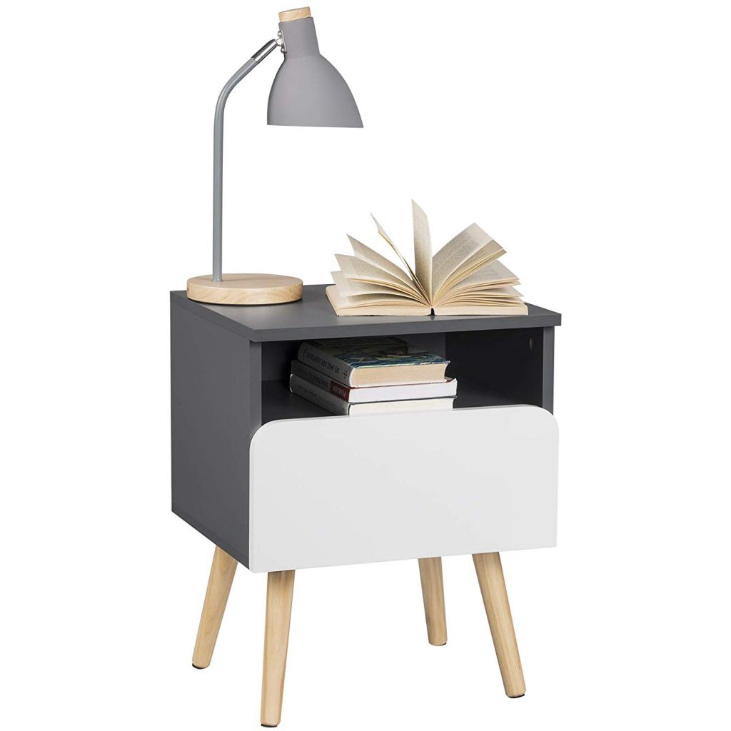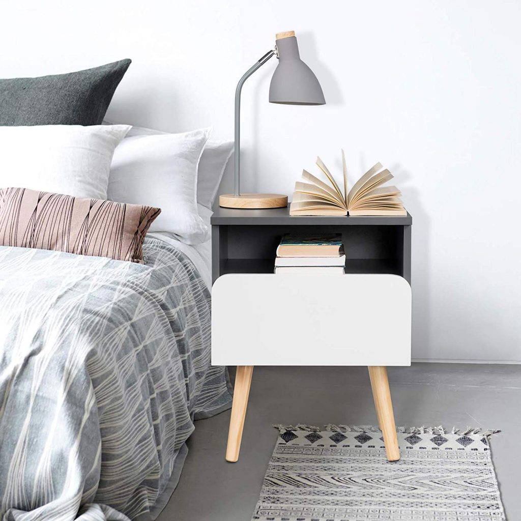 • Приліжковий столик з висувною скринькою та відкритим відсіком для зберігання книг,