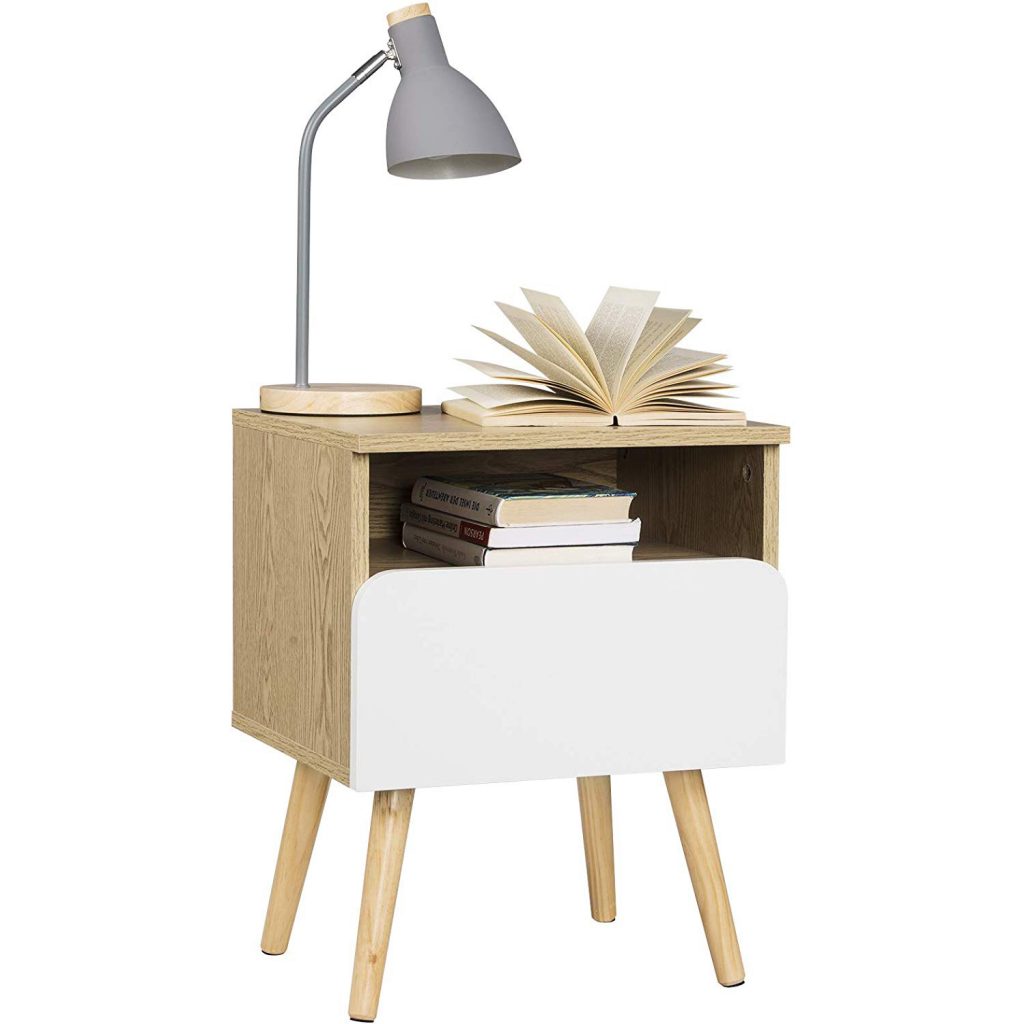 • Приліжковий столик з висувною скринькою та відкритим відсіком для зберігання книг,
