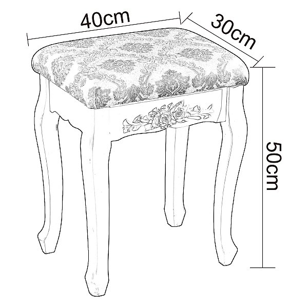 Наш продукт приваблює з погляду дизайну та якості. Першокласний матеріал МДФ та пов’язана з цим довговічна конструкція цього стільця гарантує довгий строк служби. На додаток до свого гарного дизайну, косметичний стілець надзвичайно практичний. Всі елементи виготовлені із МДФ та ручної роботи. Біла обробка надає стільцю сучасний, елегантний та світлий вигляд. Табурет добре обтягнутий і легко чиститься вологою ганчіркою. Цей стілець створює у вашій вітальні романтичну та неповторну атмосферу заміського будинку.