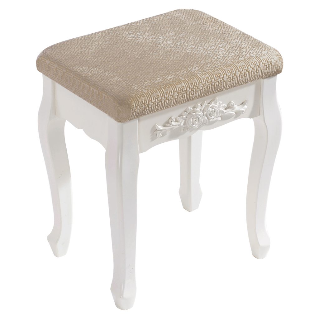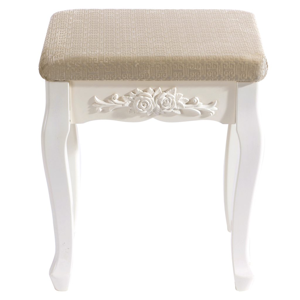 Наш продукт приваблює з погляду дизайну та якості. Першокласний матеріал МДФ та пов’язана з цим довговічна конструкція цього стільця гарантує довгий строк служби. На додаток до свого гарного дизайну, косметичний стілець надзвичайно практичний. Всі елементи виготовлені із МДФ та ручної роботи. Біла обробка надає стільцю сучасний, елегантний та світлий вигляд. Табурет добре обтягнутий і легко чиститься вологою ганчіркою. Цей стілець створює у вашій вітальні романтичну та неповторну атмосферу заміського будинку.