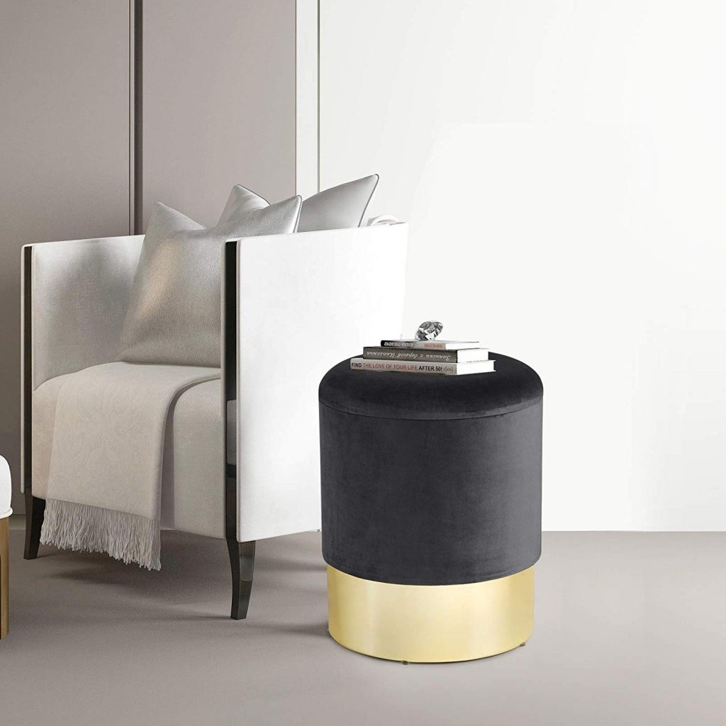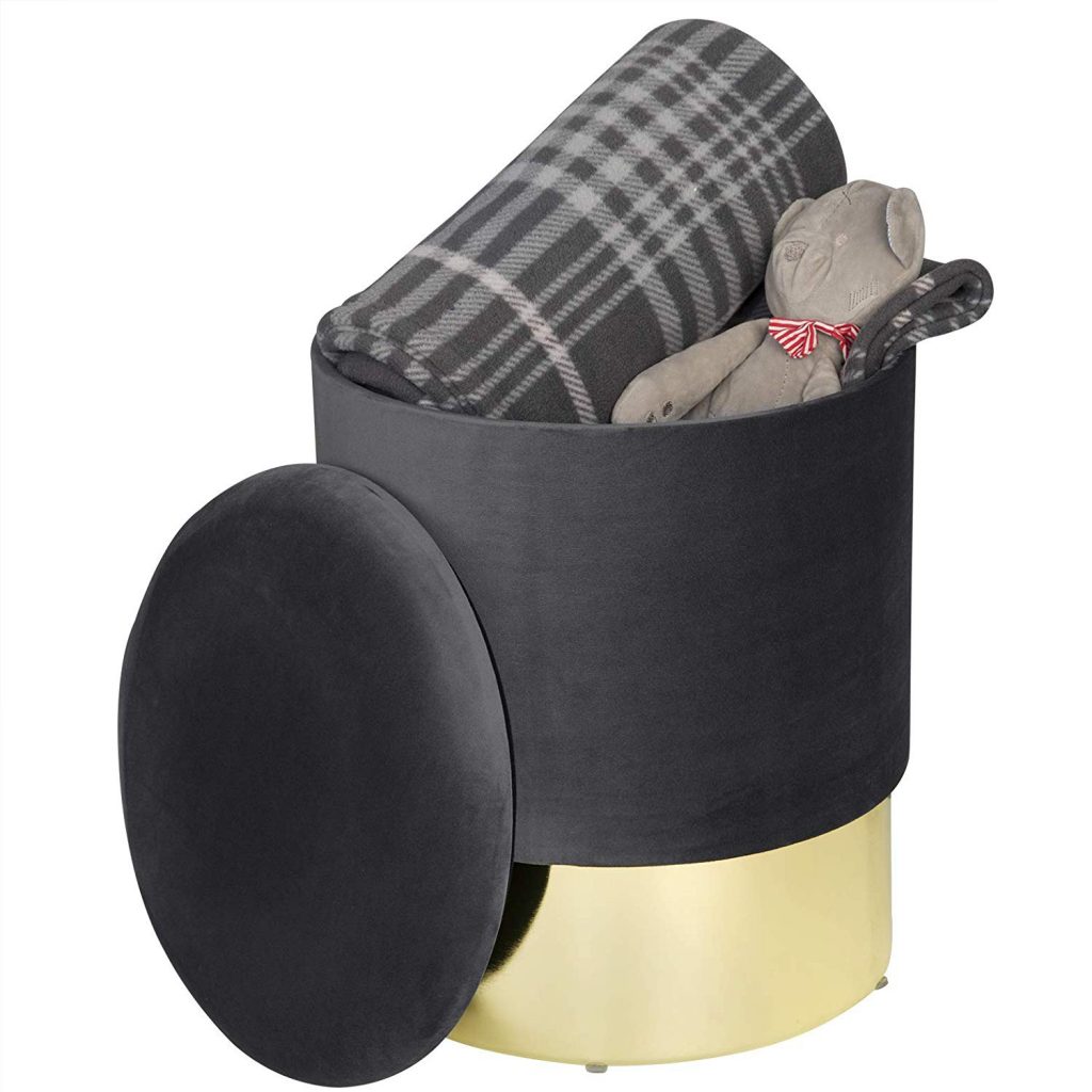 • Елегантний оксамитовий табурет із відділенням для зберігання компакт-дисків, книг, журналів, подушок тощо.